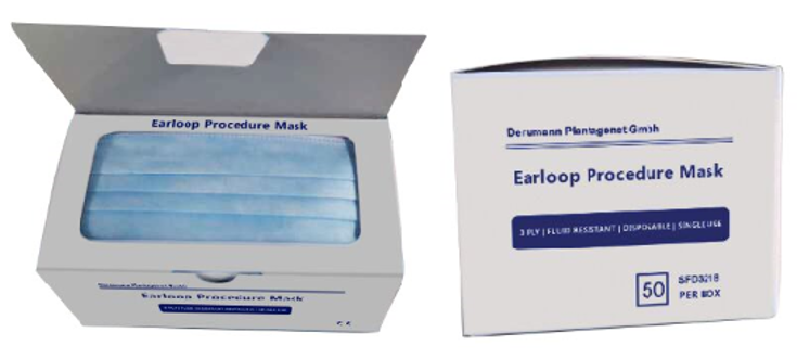 - Rückseite: Latexfrei, hypoallergen, Glasfasergebühr, flüssigkeitsbeständig, dreilagige Konstruktion. 3 Falten, damit der Benutzer die Maske so erweitern kann, dass sie den Bereich von der Nase bis zum Kinn bedeckt. Die Maske sollte mit einer Ohrschlaufe hinter den Ohren gesichert werden.